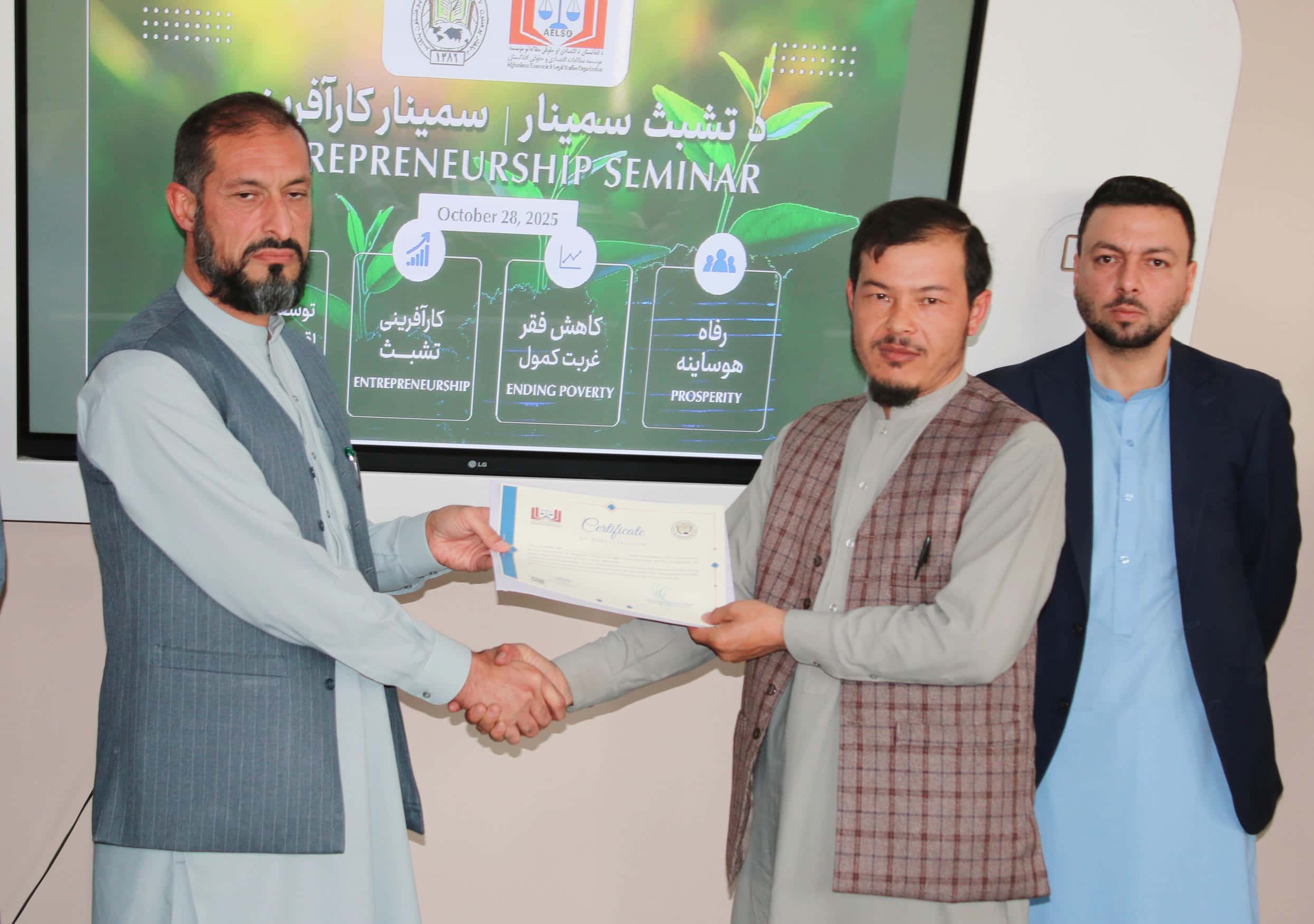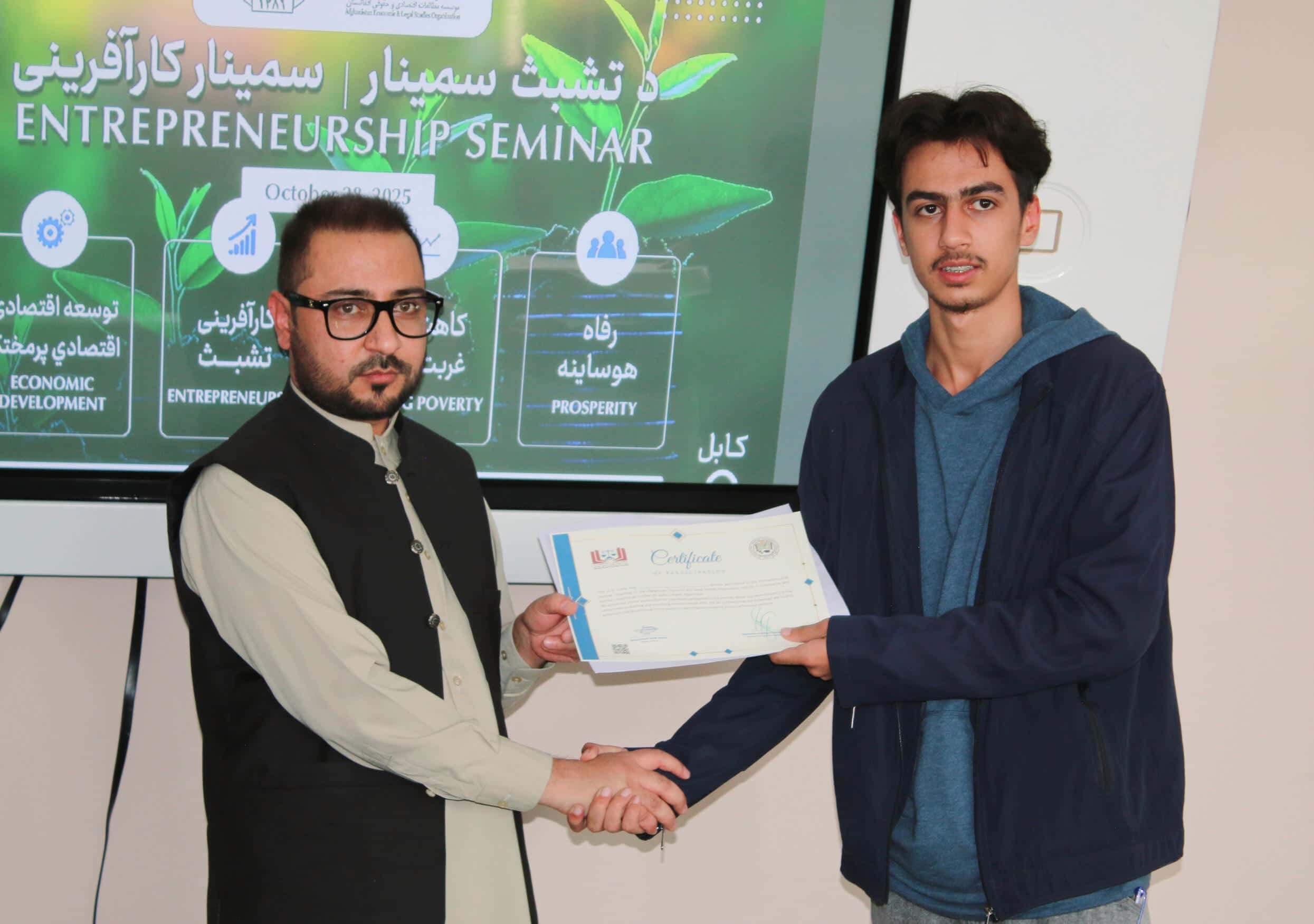 The seminar also explored the core aspects of entrepreneurship; creative thinking, skill development, and the courage to take risks while examining the challenges and opportunities unique to Kabul’s business landscape.