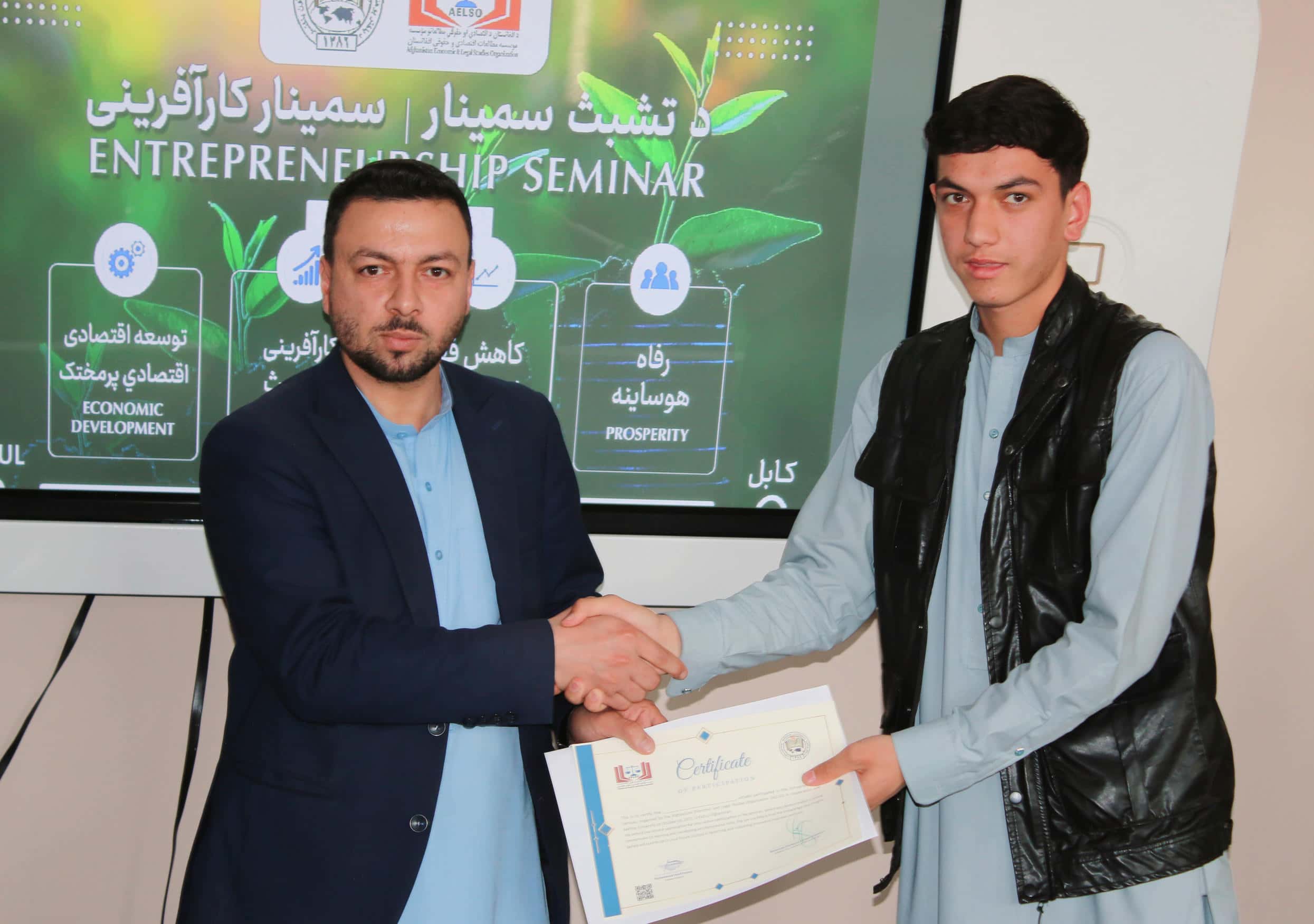 The Afghanistan Economic and Legal Studies Organization (AELSO), together with Bakhtar University, recently welcomed university professors, young people, entrepreneurs, and curious minds to the Kabul Entrepreneurship Seminar.